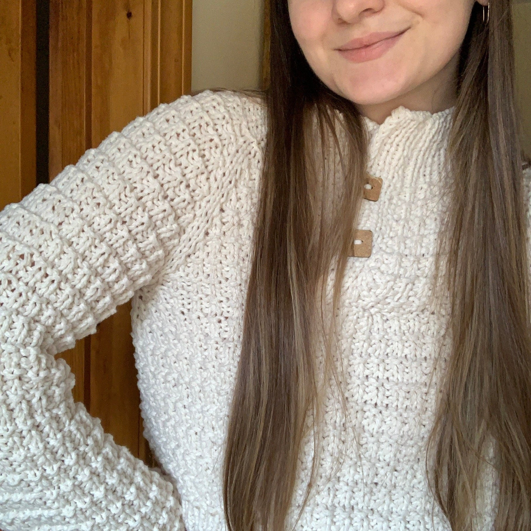 The Cecilia Sweater will break your heart, since everyone and their mom will be begging you to make one for them. With its seamless construction, polo neckline, and texture, it's the perfect sweater to throw on.