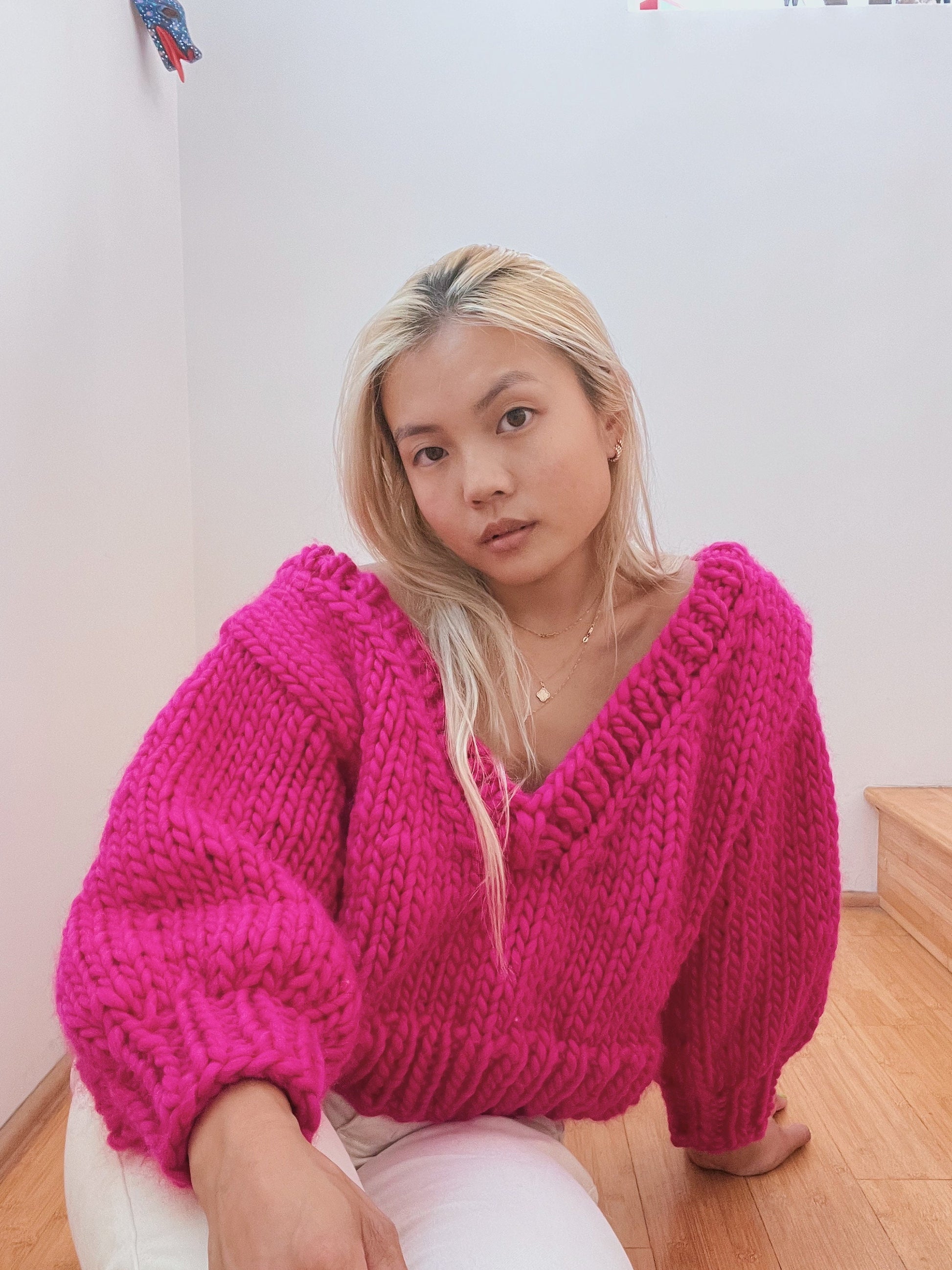The V neck sweater of your dreams The Chunky Valerie Sweater is an instant classic. With its deep V and drop shoulders, people will say they like the way you dress ;)