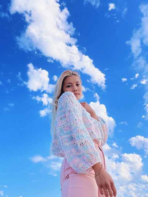 This pattern is suitable for beginners! You should be familiar with stockinette stitch! This pattern uses the following techniques: increases, dropping stitches, and knitting in the round. I’ll be posting tutorials on my instagram!