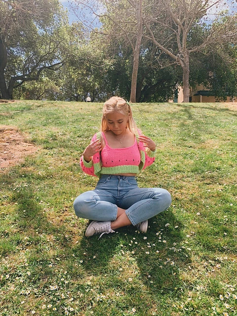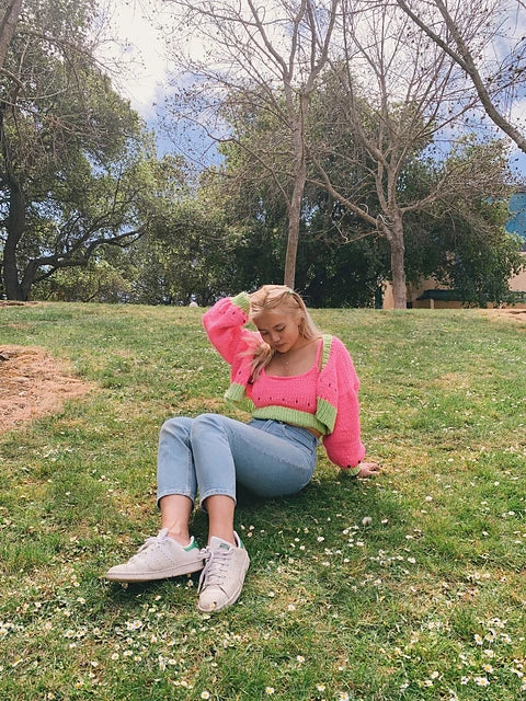 A classy, cool, and sophisticated set. The Game, Set, Match pattern is the perfect knit for spring/summer with a cropped cardigan and scoop-neck top. People will be stopping you in the street to ask you where you got it ;)