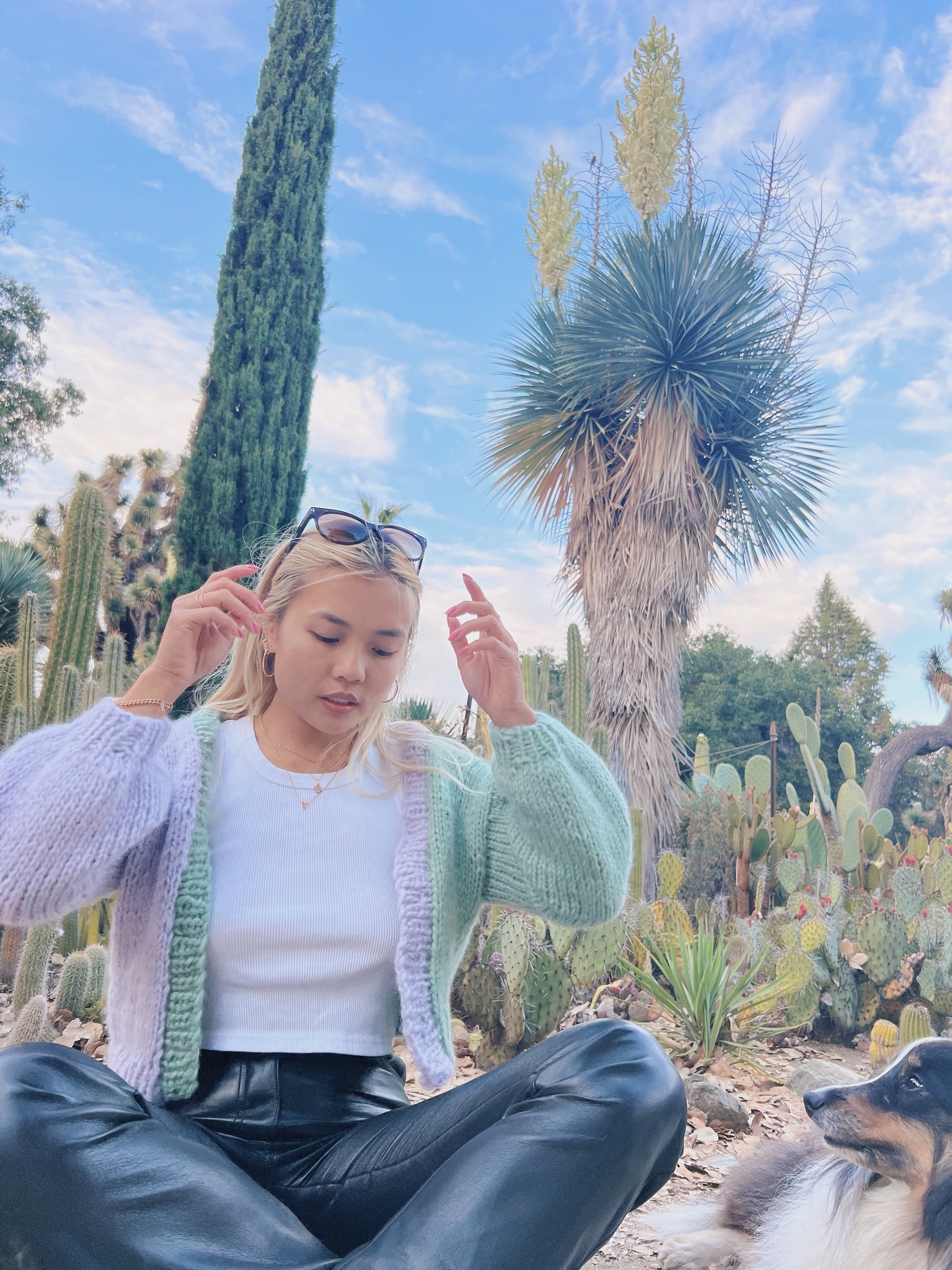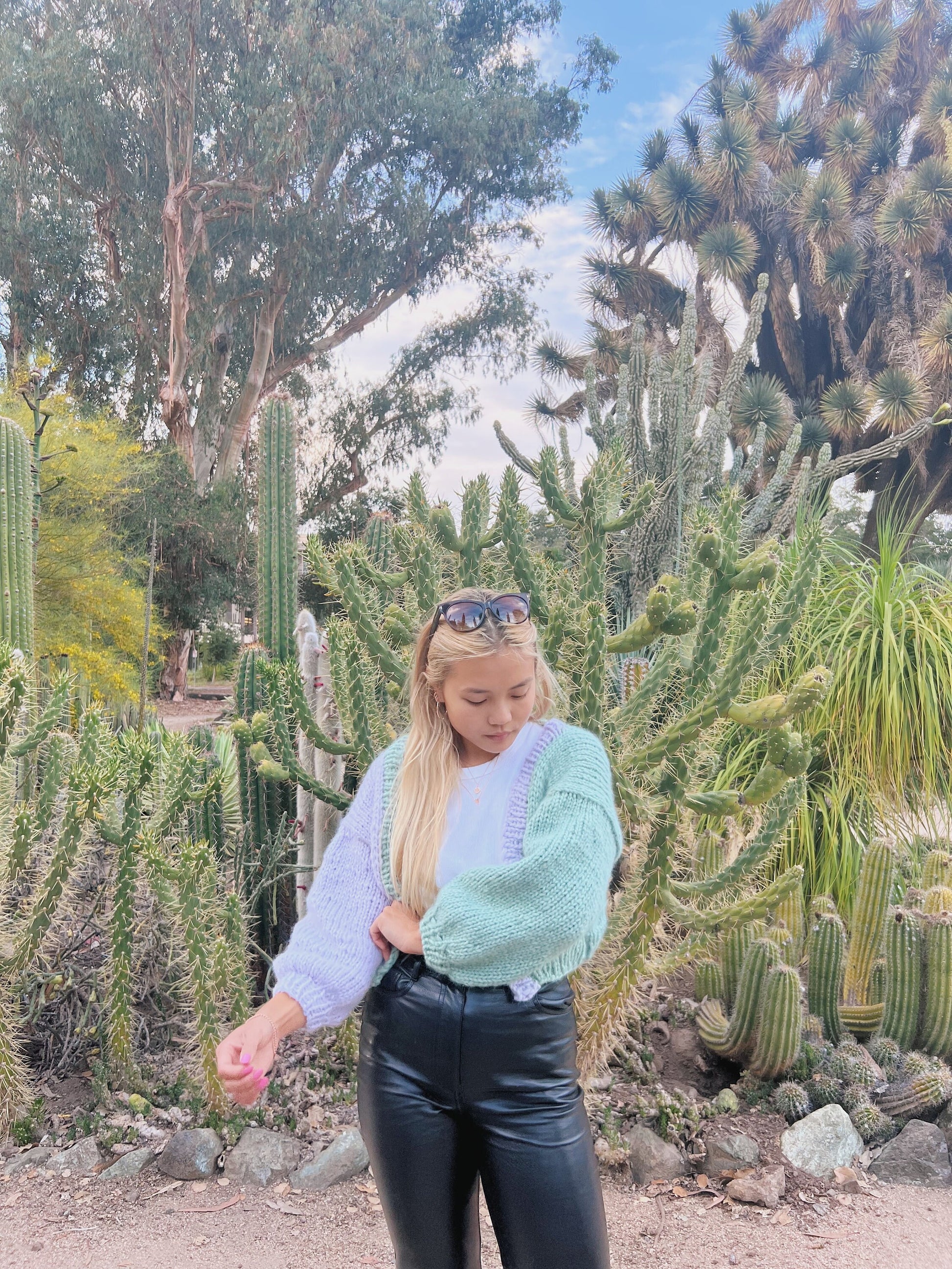 The pattern is suitable for beginners! You should be familiar with stockinette stitch! This pattern uses the following techniques: Three-needle bind off, intarsia, and picking up stitches. I’ll be posting tutorials on my instagram!