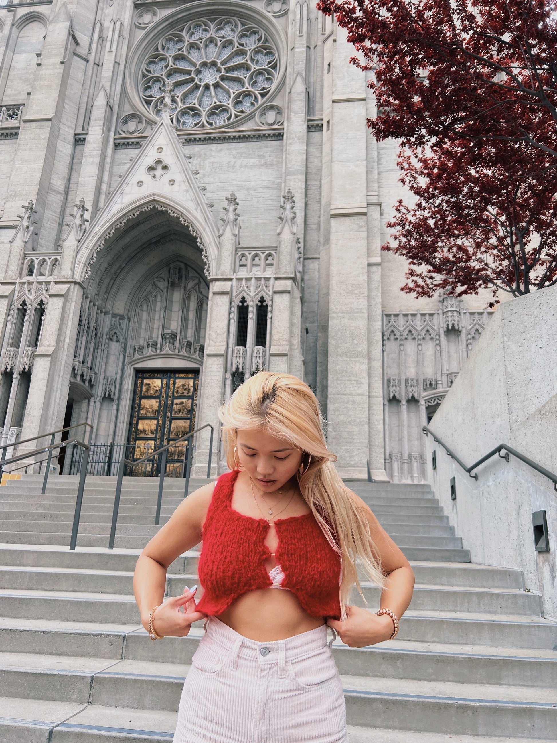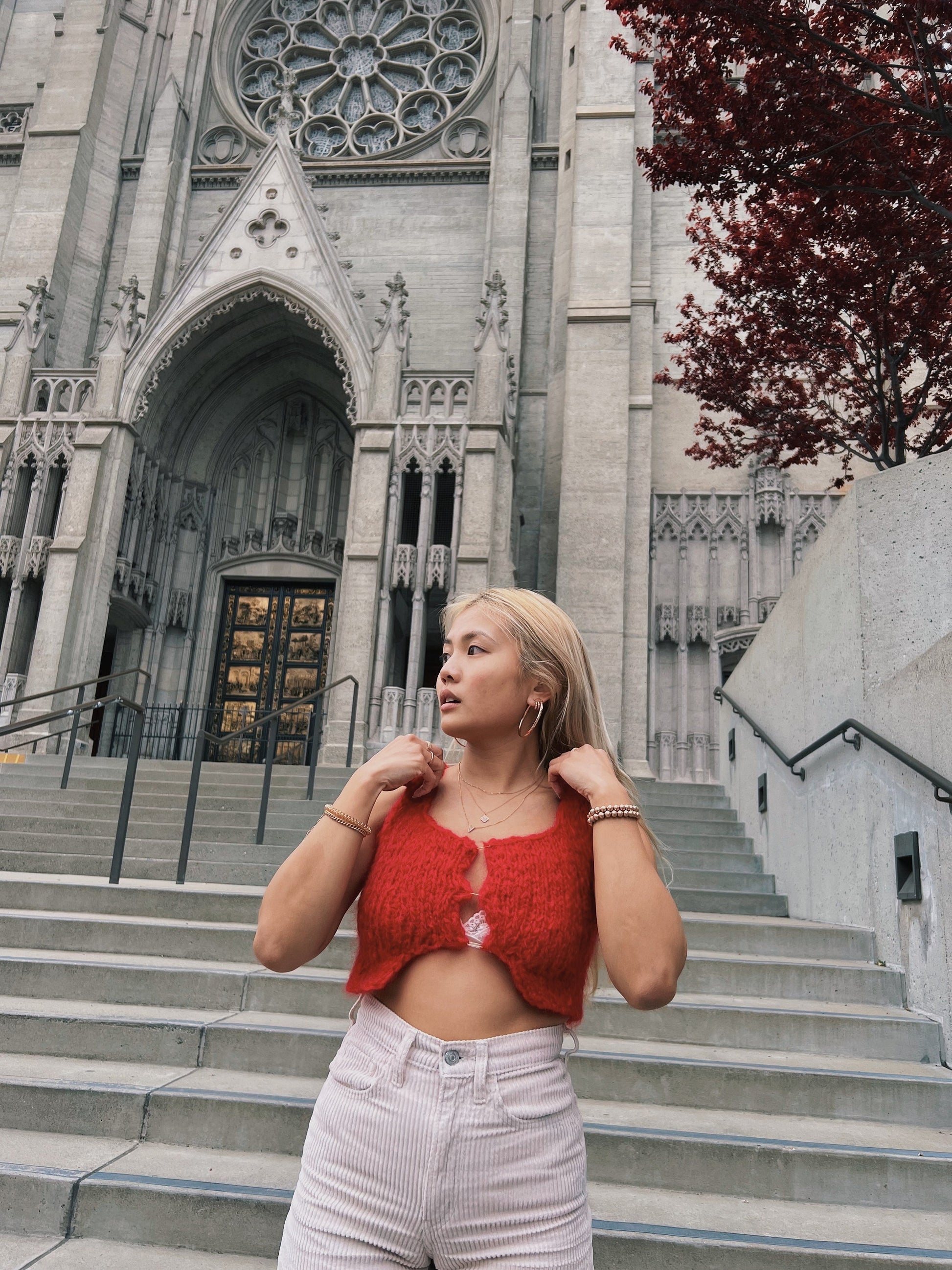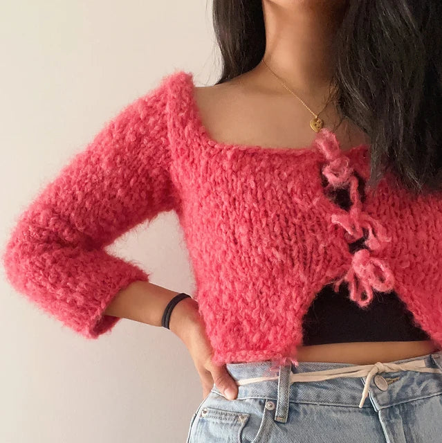 This pattern is suitable for beginners! You should be familiar with stockinette stitch! This pattern uses the following techniques: picking up stitches, increases, three-needle bind off, and knitting in the round. I’ll be posting tutorials on my instagram!