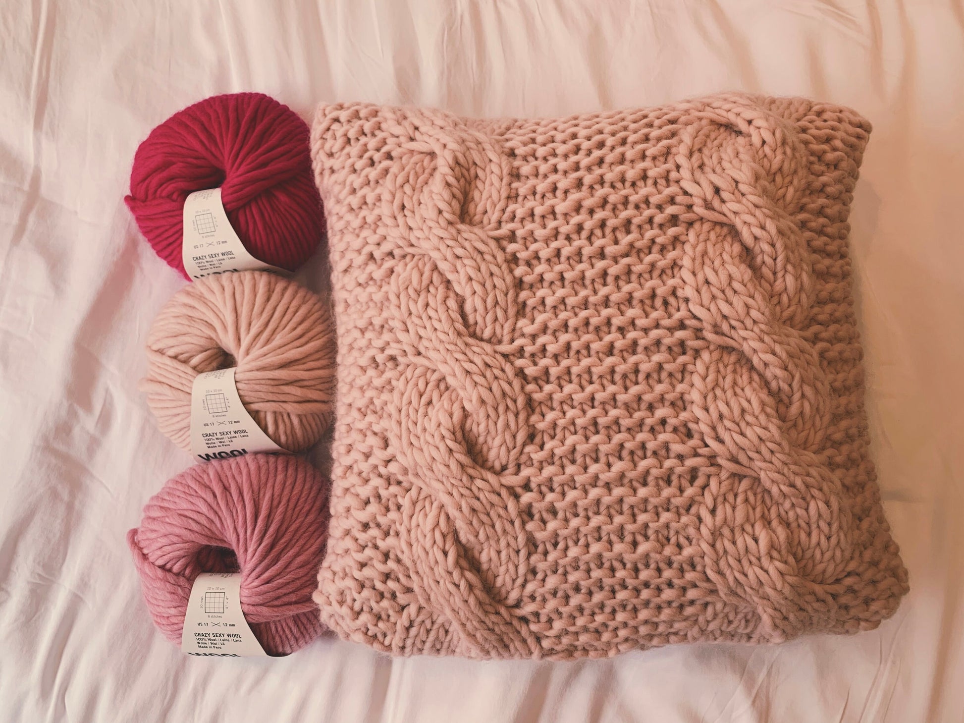 A super chill pillow case pattern! It uses ties in the back to hold it closed so that you can easily take it off and wash it (don’t forget to handwash your knits). The cables in the front add a sophisticated vibe which make it the perfect throw pillow for your living room, dining room, or bedroom.
