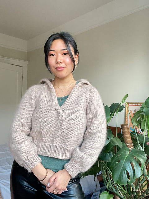 This pattern is suitable for beginners! You should be familiar with stockinette stitch! This pattern uses the following techniques: picking up stitches, increases, and knitting in the round. I’ll be posting tutorials on my instagram!