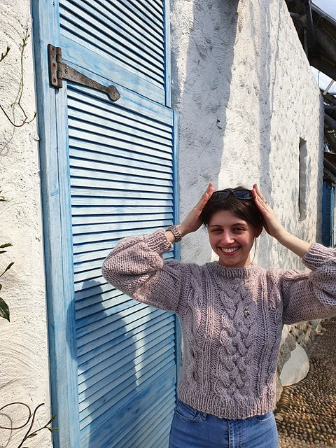 The cable sweater you’ve been waiting for. With the option to make wide or fitted sleeves and its oversized fit, this is an instant heirloom. Constructed flat and in the round, it’s the perfect way to