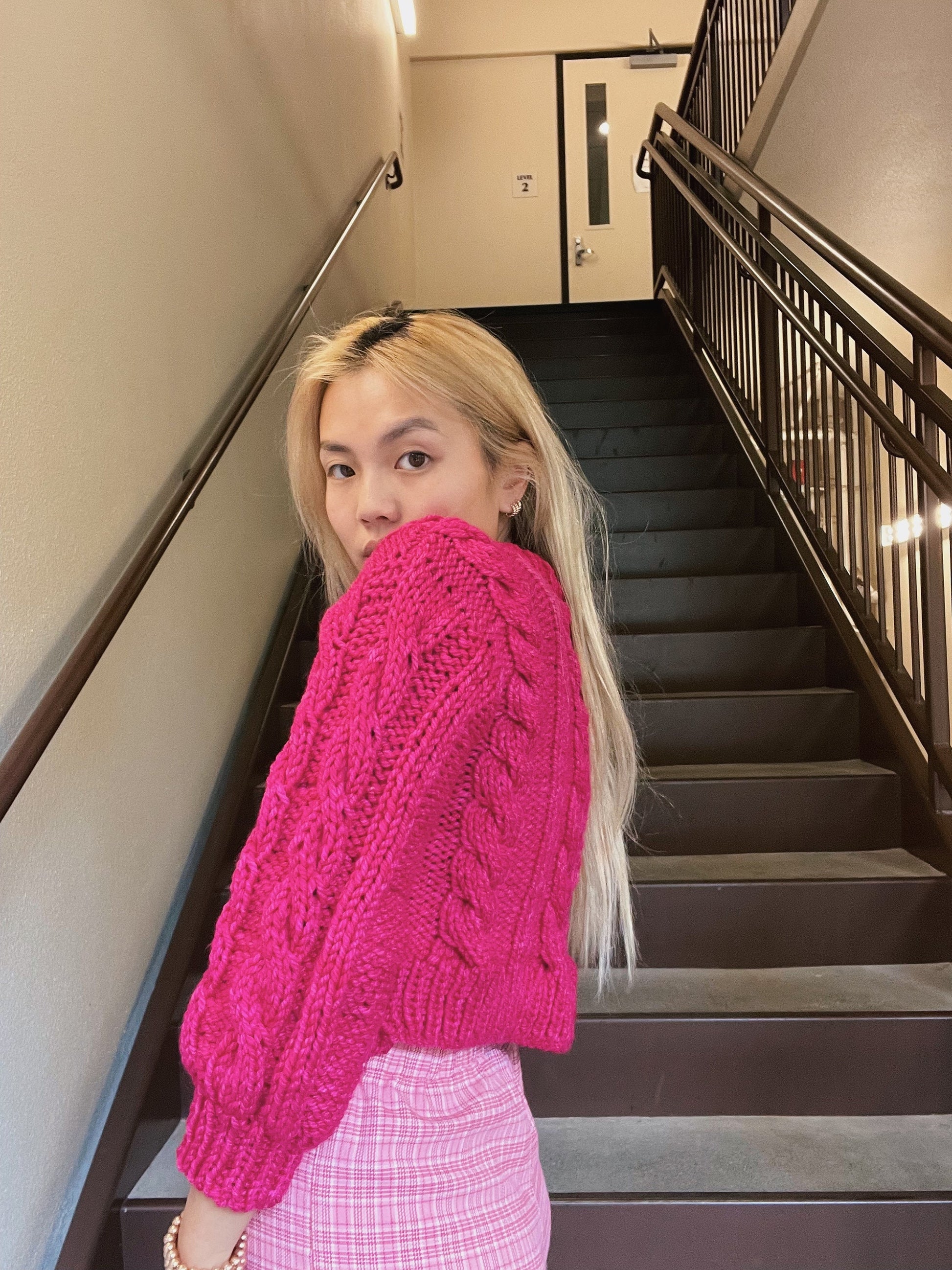 This pattern is suitable for beginners and cable-beginners! You should be familiar with stockinette stitch! This pattern uses the following techniques: picking up stitches, reading charts, cabling, decreases, three needle bind off, and knitting in the round. I’ll be posting tutorials on my instagram!